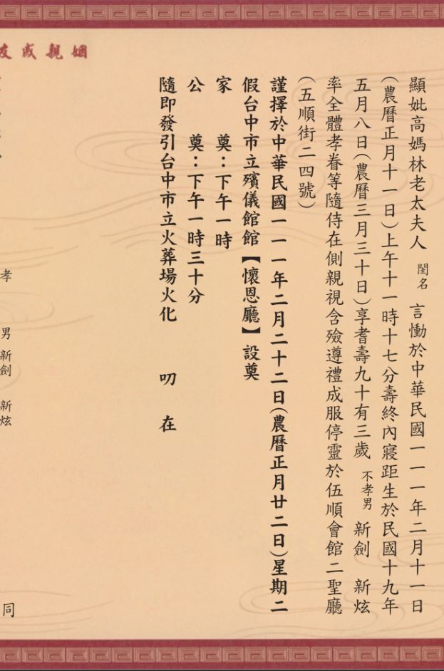 會員15 高新炫理事長 之母親逝世告別式擇於111年2月22日(二)舉行公祭