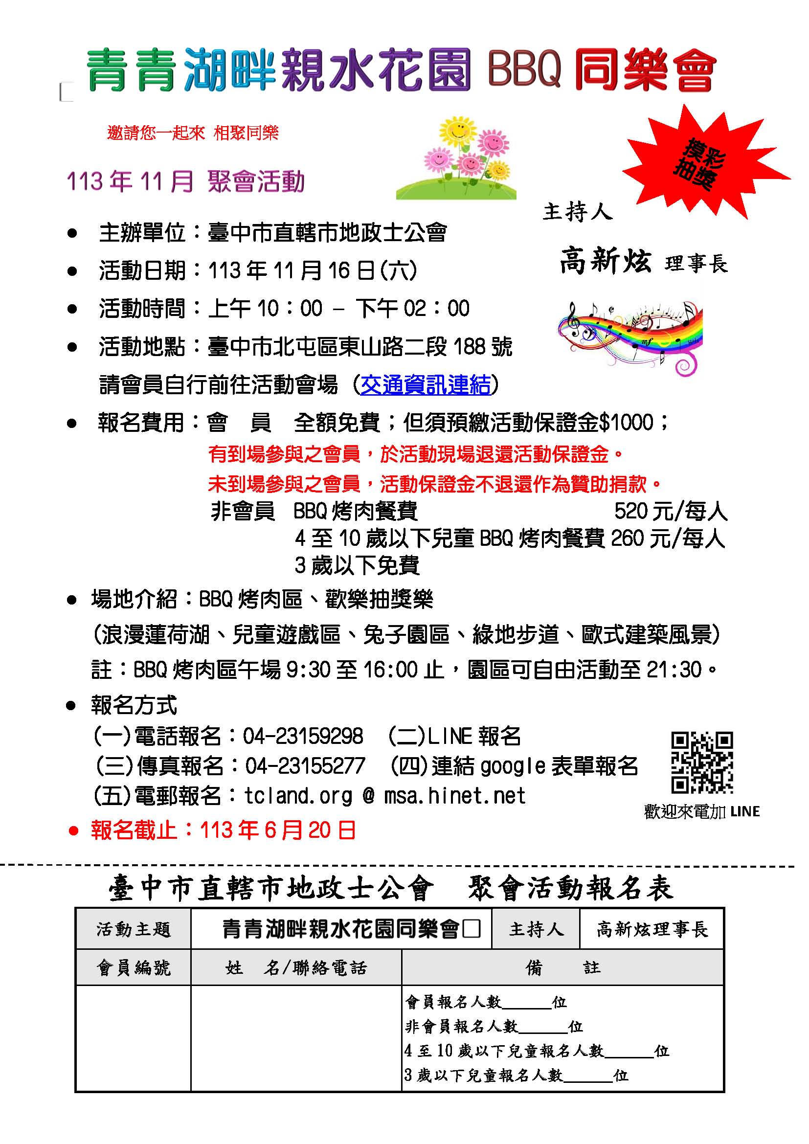 邀請您參加同樂會,請點入google表單報名,謝謝您。