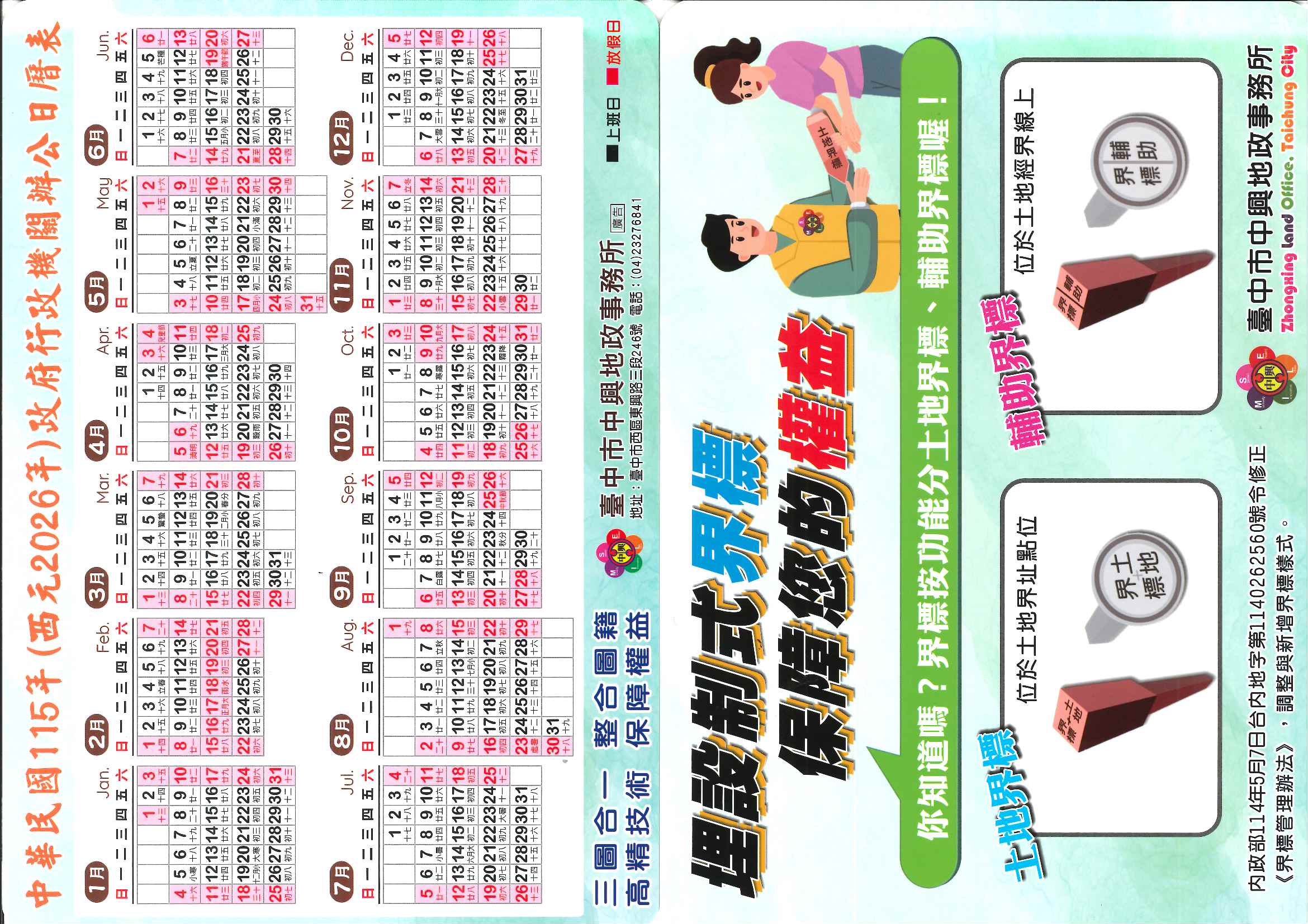 2026年政府行政機關辦公日曆表